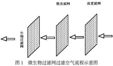 随着国家工业的不断发展,工业生产过程中产生大量废气、粉尘等,造成城市空气质量严重降低,很多居民为改善居住环境的空气质量,会在居住环境中安装空气净化器,虽然效果较好,但造价较高,难以大规模应用,生物过滤法在当前城市废气处理中的应用十分广泛,主要原理是利用造价较低的生物过滤网对空气进行过滤,空气中的污染物质会在过滤网中微生物的作用下转化为二氧化碳等清洁气体,实现净化空气的目的。微生物过滤网净化空气的过程可参考图1。