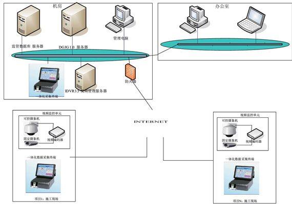 整个系统由建筑工程关键岗位人员到岗与工地安全监管信息平台、建筑工程现场一体化信息采集终端和工地视频监控单元等组成。总体结构如下: