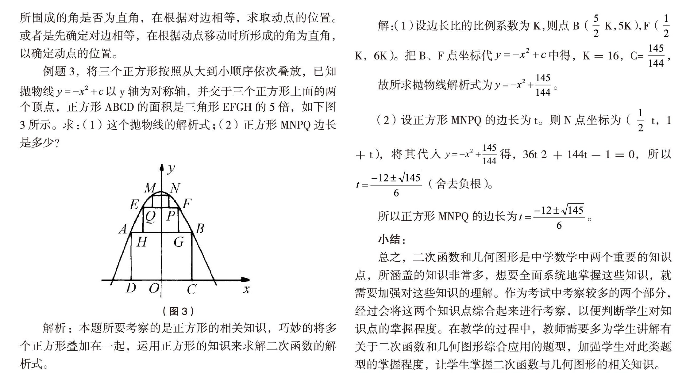 总之,二次函数和几何图形是中学数学中两个重要的知识点,所涵盖的知识非常多,想要全面系统地掌握这些知识,就需要加强对这些知识的理解。作为考试中考察较多的两个部分,经过会将这两个知识点综合起来进行考察,以便判断学生对知识点的掌握程度。在教学的过程中,教师需要多为学生讲解有关于二次函数和几何图形综合应用的题型,加强学生对此類题型的掌握程度,让学生掌握二次函数与几何图形的相关知识。