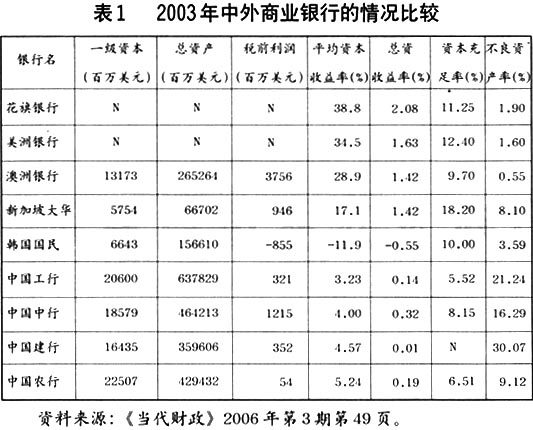 这种风险其实质是国家干预银行的结果。中国、日本、韩国国有银行不良资产的形成都有这方面的原因。银行呆坏账问题成为和国有企业改革互动的关键问题,国有企业发展的遗留问题大部分转移到了银行头上。中国国有商业银行银行资本充足率从1989年的8.8%下降到1996年4.0%,低于巴塞尔标准的8.0%。发达国家的 绝大多数商业银行资本充足率高于巴塞尔资本充足协议条款8.0%的标准。美国上个世纪90年代商业银行的平均资本充足率为12%~13%;英国为12%~14%。2003年我国四大银行中仅中国银行达到这一标准,建行为6.91%,工行为5.54%。事实上,国有银行目前的资本金还是依赖于1998年财政部发行的2700亿元专门用于补充国有银行资本金的特别国债,如果没有国债的补充,可能国有商业银行的资本充足率还要调低几个百分点。虽然1999年中央政府成立了专门的资产管理公司进行呆坏账的处理,剥离了1.4万亿不良资产,进行债转股,但是可以看到的是,新的呆坏账问题随即出现。这些银行呆坏账大部分与国有企业改革剥离不良资产有关。据中国人民银行公布的数据,截至2003年9月末,作为中国经济发展主要资金供应者的4家国有独资商业银行,不良贷款余额按国际通行的五级分类标准达到19880亿元,不良贷款率为21.4%,比国内11家股份制商业银行平均数高出13个百分点。我国的主要商业银行与国外商业银行相比,资本充足率低,不良资产比率高。因此,可以说中国银行的风险比较大。