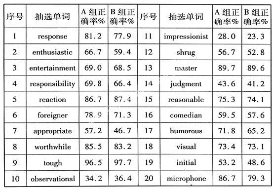 通过对测验结果的分析可以发现,A组学生在了解了单词组块特征后再进行记忆,其记忆的效果比B组学生好。这就说明,在记忆过程中应充分发挥组块效应对单词记忆的积极影响。