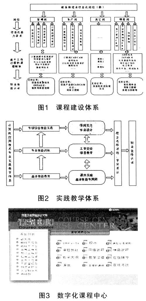 结合制造业信息化岗位群,依据针对工作过程定课程、针对工作岗位练技能、针对岗位技能需求考证书的课程建设思路,构建以工作过程为导向、技能培养为核心、项目驱动为载体的课程体系,建设一批以工作过程、项目教学、任务驱动为导向的专业核心课程、精品课程、教材和课件,紧紧围绕专业技能培养和辐射带动作用建设共享型专业教学资源库,着力培养学生计算机应用技能。课程建设体系见图1。